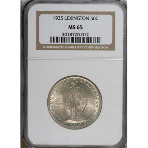 <B>1925 50C Lexington MS65 NGC.</B></I> NGC Census: (758/137). PCGS Population (800/246). Mintage: 162,013. Numismedia Wsl. Price for NGC/PCGS coin in MS65: $510. (#9318)<BR><BR><b>Shipping:</b> Coins & Currency (<a target="_blank" href="http://www.heritageauctions.com/common/shipping.php">view shipping information</a>\)