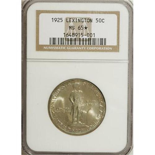 <B></B></I> <B>1925 50C Lexington MS65 <img border='0' src='http://www.heritagecoins.com/images/star.gif' width=10 height=10> NGC.</B></I> NGC Census: (756/136). PCGS Population (800/246). Mintage: 162,013. Numismedia Wsl. Price for NGC/PCGS coin in MS65: $510. (#9318)<BR><BR><b>Shipping:</b> Coins & Currency (<a target="_blank" href="http://www.heritageauctions.com/common/shipping.php">view shipping information</a>\)