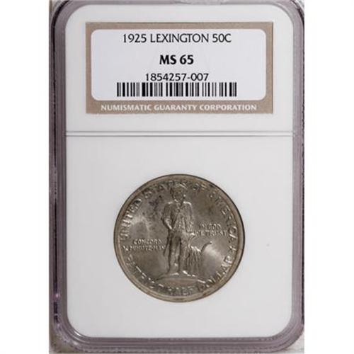<B>1925 50C Lexington MS65 NGC.</B></I> NGC Census: (758/137). PCGS Population (800/246). Mintage: 162,013. Numismedia Wsl. Price for NGC/PCGS coin in MS65: $510. (#9318)<BR><I>From The Frank DuVall Collection of U.S. Commemoratives.</B></I><BR><BR><b>Shipping:</b> Coins & Currency (<a target="_blank" href="http://www.heritageauctions.com/common/shipping.php">view shipping information</a>\)