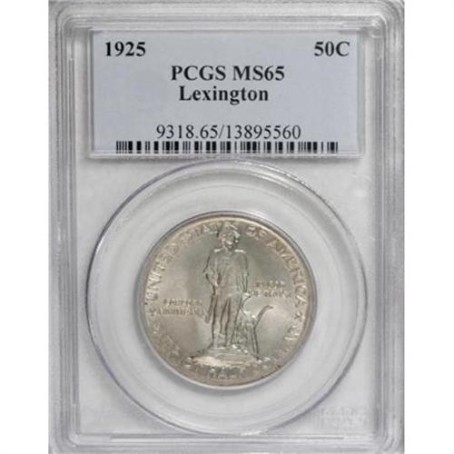 <B>1925 50C Lexington MS65 PCGS.</B></I> PCGS Population (800/246). NGC Census: (758/137). Mintage: 162,013. Numismedia Wsl. Price for NGC/PCGS coin in MS65: $510. (#9318)<BR><I>From The Frank DuVall Collection of U.S. Commemoratives.</B></I><BR><BR><b>Shipping:</b> Coins & Currency (<a target="_blank" href="http://www.heritageauctions.com/common/shipping.php">view shipping information</a>\)
