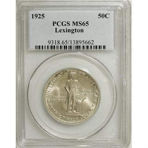 <B>1925 50C Lexington MS65 PCGS.</B></I> PCGS Population (800/246). NGC Census: (758/137). Mintage: 162,013. Numismedia Wsl. Price for NGC/PCGS coin in MS65: $510. (#9318)<BR><I>From The Frank DuVall Collection of U.S. Commemoratives.</B></I><BR><BR><b>Shipping:</b> Coins & Currency (<a target="_blank" href="http://www.heritageauctions.com/common/shipping.php">view shipping information</a>\)
