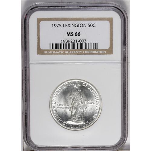 1925 50C Lexington MS66 NGC. The glistening silver-whi