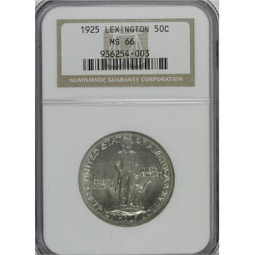 <B>1925 50C Lexington MS66 NGC.</B></I> This choice Premium Gem piece is nearly all-white, with shimmering luster, good strike detail, and few contact marks. NGC has certified only 10 pieces of the issue finer (3/08).<BR><BR><b>Shipping:</b> Coins & Currency (<a target="_blank" href="http://www.heritageauctions.com/common/shipping.php">view shipping information</a>)