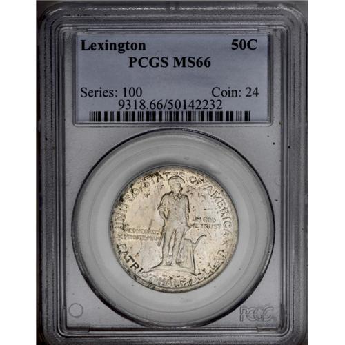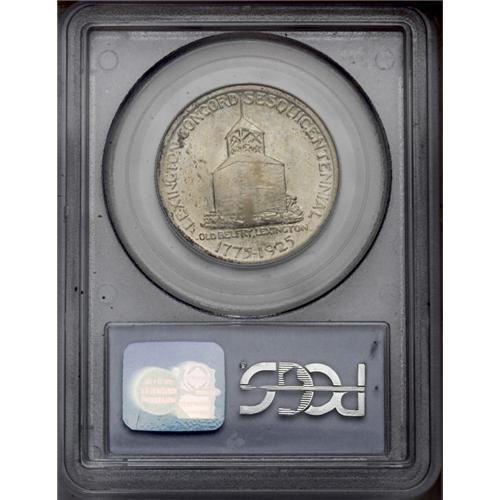 <B>1925<50C> Lexington MS66 PCGS.</B></I> Speckled olive-brown patina races over lustrous surfaces, and the design elements are adequately struck. Each side is relatively well preserved, with just a couple of obscure marks on the reverse motif. PCGS has graded only eight pieces higher (3/06). <BR><BR><B>Important notice:</B> Heritage usually auctions material at the rate of 200-250 lots per hour. On some occasions eBay Live bid software or the Internet may not be able to keep up with the pace of the auction. We recommend placing a realistic absentee bid now as insurance to avoid disappointment. Occasionally the auctioneer may eliminate or reject an eBay Live bid, and the auctioneer may also reopen a lot after the close of the eBay live bidding (usually because we missed an audience bid), and may reject your bid even if it shows you as the winning bidder. By bidding via eBay Live, you agree that Heritage may award the lot to another bidder at its sole discretion under the circumstances described above or any other reasonable circumstances. Since eBay bids are not shown to us until we open the lot on the floor, we treat those bids just like floor bids. In most cases the floor responds before the eBay bid is presented to us, due to Internet lag time, so for consistency we have made it a policy that floor bids are always considered first over tie eBay live bids. Also please note that all Heritage lots purchased through eBay Live carry a 20% Buyer's Premium. Please make sure you read the Terms and Conditions before you bid. This lot is being auctioned in conjunction with a live floor auction by Heritage Galleries & Auctioneers. All final auction and invoice information will be supplied by Heritage Galleries & Auctioneers, and all other information should be considered preliminary. Lot:4977 <BR><BR><B>Winning Notification and Billing:</B> After the FINAL session in this auction is complete, Heritage will send e-mail and snail mail invoices. This process normally takes several days. All final auction and invoice information will be supplied by Heritage Galleries & Auctioneers, and all other information should be considered preliminary. <BR><BR>This auction will be conducted on a live auction floor and over the Internet through eBay Live. If you choose to place an absentee bid, please take a moment to <font color='#0000ff'><u><a href='http://pages.ebay.com/liveauctions/help/before/laabsentee.html'>learn how eBay Live absentee bidding works</a></u></font><font color='#000000'>