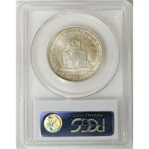 <B>1925 50C Lexington MS66 PCGS.</B></I> Soft peach and silver-gray patina drapes the lustrous surfaces of this well-defined Premium Gem. The Lexington-Concord was the first of a number of classic commemoratives to celebrate anniversaries from the American Revolution. PCGS has graded just nine coins finer (10/07).<BR><BR><b>Shipping:</b> Coins & Currency (<a target="_blank" href="http://www.heritageauctions.com/common/shipping.php">view shipping information</a>)