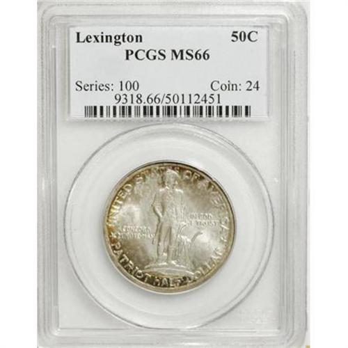 <B>1925 50C Lexington MS66 PCGS.</B></I> This strongly lustrous piece has golden patina at the obverse rims and a few dots of maroon-violet toning on the reverse, but the surfaces are otherwise silver-gray. A pleasingly detailed and beautifully preserved exemplar. PCGS has graded only nine pieces finer (10/07).<BR><BR><b>Shipping:</b> Coins & Currency (<a target="_blank" href="http://www.heritageauctions.com/common/shipping.php">view shipping information</a>)