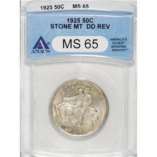 <B>1925 50C Stone Mountain--Double Die Reverse--MS65 ANACS.</B></I> NGC Census: (1972/700). PCGS Population (1689/842). Mintage: 1,314,709. Numismedia Wsl. Price for NGC/PCGS coin in MS65: $240. (#9378)<BR><I>From The Frank DuVall Collection of U.S. Commemoratives.</B></I><BR><BR><b>Shipping:</b> Coins & Currency (<a target="_blank" href="http://www.heritageauctions.com/common/shipping.php">view shipping information</a>)
