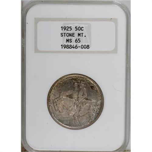 <B>1925 50C Stone Mountain MS65 NGC.</B></I> NGC Census: (1963/697). PCGS Population (1689/835). Mintage: 1,314,709. Numismedia Wsl. Price for NGC/PCGS coin in MS65: $240. (#9378)<BR><BR><b>Shipping:</b> Coins & Currency (<a target="_blank" href="http://www.heritageauctions.com/common/shipping.php">view shipping information</a>)