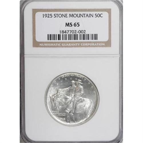 <B>1925 50C Stone Mountain MS65 NGC.</B></I> NGC Census: (1963/697). PCGS Population (1689/835). Mintage: 1,314,709. Numismedia Wsl. Price for NGC/PCGS coin in MS65: $240. (#9378)<BR><BR><b>Shipping:</b> Coins & Currency (<a target="_blank" href="http://www.heritageauctions.com/common/shipping.php">view shipping information</a>)
