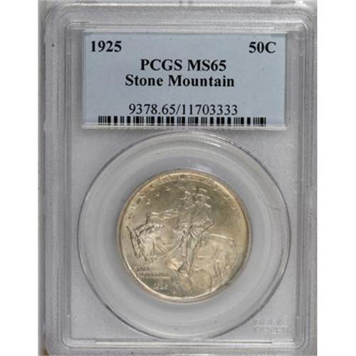 <B>1925 50C Stone Mountain MS65 PCGS.</B></I> PCGS Population (1695/845). NGC Census: (1978/701). Mintage: 1,314,709. Numismedia Wsl. Price for NGC/PCGS coin in MS65: $240. (#9378)<BR><BR><b>Shipping:</b> Coins & Currency (<a target="_blank" href="http://www.heritageauctions.com/common/shipping.php">view shipping information</a>)