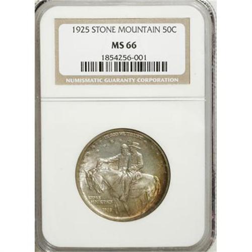 <B>1925 50C Stone Mountain MS66 NGC.</B></I> NGC Census: (566/131). PCGS Population (666/169). Mintage: 1,314,709. Numismedia Wsl. Price for NGC/PCGS coin in MS66: $440. (#9378)<BR><I>From The Frank DuVall Collection of U.S. Commemoratives.</B></I><BR><BR><b>Shipping:</b> Coins & Currency (<a target="_blank" href="http://www.heritageauctions.com/common/shipping.php">view shipping information</a>)
