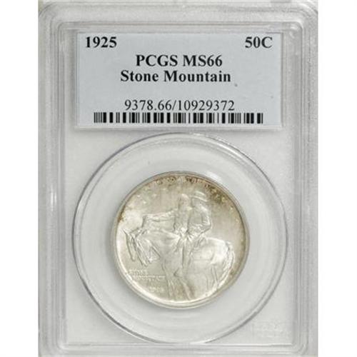 <B>1925 50C Stone Mountain MS66 PCGS.</B></I> . PCGS Population (696/169). NGC Census: (584/134). Mintage: 1,314,709. Numismedia Wsl. Price for NGC/PCGS coin in MS66: $350. (#9378)<BR><BR><b>Shipping:</b> Coins & Currency (<a target="_blank" href="http://www.heritageauctions.com/common/shipping.php">view shipping information</a>)
