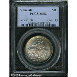 <B>1925 50C Stone Mountain MS67 PCGS.</B></I> The surfaces are impeccably preserved with shimmering luster and an attractive veneer of copper and gold patination. The luster, as one would expect, is also resplendent throughout. <BR><I>From The Banks Collection.</B></I> Lot:8588