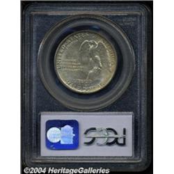 <table><tr><td><table><tr><td>1925 50C Stone Mountain MS67 PCGS. Well struck with bright, full luster and lovely pale honey-golden color. Both sides of this flashy Superb Gem are exquisitely preserved, with a small group of wispy blemishes, near the left obverse rim, just to the right of obverse star 2, as the only discernible surface flaw. Population: 138 in 67, 6 finer (3/04). <BR><BR><B>Important notice:</B> Heritage usually auctions material at the rate of 200-250 lots per hour. On some occasions eBay Live bid software or the Internet may not be able to keep up with the pace of the auction. We recommend placing a realistic absentee bid now as insurance to avoid disappointment. Occasionally the auctioneer may eliminate or reject an eBay Live bid, and the auctioneer may also reopen a lot after the close of the eBay live bidding (usually because we missed an audience bid), and may reject your bid even if it shows you as the winning bidder. By bidding via eBay Live, you agree that Heritage may award the lot to another bidder at its sole discretion under the circumstances described above or any other reasonable circumstances. Since eBay bids are not shown to us until we open the lot on the floor, we treat those bids just like floor bids. In most cases the floor responds before the eBay bid is presented to us, due to Internet lag time, so for consistency we have made it a policy that floor bids are always considered first over tie eBay live bids. Also please note that all Heritage lots purchased through eBay Live carry a 20% Buyer's Premium. Please make sure you read the Terms and Conditions before you bid. <BR><BR><B>IMPORTANT ANNOUNCEMENT ABOUT RESERVES:</B> Heritage now divulges all reserves on its web site 7 days before every auction. If you want to know whether the reserve on this lot has been met, and if not, what the reserve amount is, please visit this lot page on the HeritageCoin.com web site, or email: bid@HeritageGalleries.com </span></font></td></tr></table></td></tr></table>