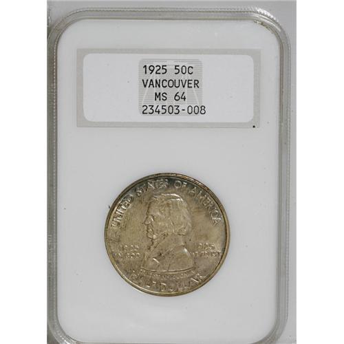 <B>1925<50C> Vancouver MS64 NGC.</B></I> Deeply patinated in thick pea-green and gold with blue overtones. A sharply struck and lustrous near-Gem with few marks for the grade.