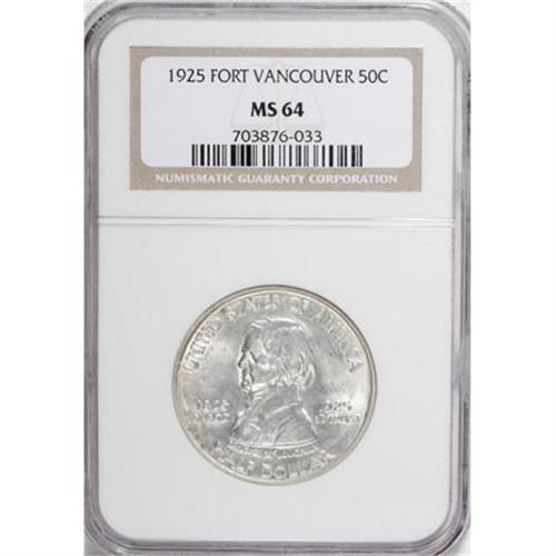 <B>1925 50C Vancouver MS64 NGC.</B></I> NGC Census: (765/791). PCGS Population (897/930). Mintage: 14,994. Numismedia Wsl. Price for NGC/PCGS coin in MS64: $475. (#9399)<BR><BR><b>Shipping:</b> Coins & Currency (<a target="_blank" href="http://www.heritageauctions.com/common/shipping.php">view shipping information</a>\)