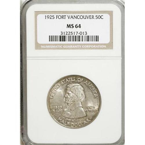 <B>1925 50C Vancouver MS64 NGC.</B></I> NGC Census: (775/808). PCGS Population (927/936). Mintage: 14,994. Numismedia Wsl. Price for NGC/PCGS coin in MS64: $475. (#9399)<BR><BR><b>Shipping:</b> Coins & Currency (<a target="_blank" href="http://www.heritageauctions.com/common/shipping.php">view shipping information</a>)