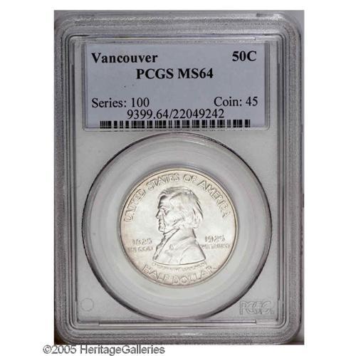 1925 50C Vancouver MS64 PCGS. Essentially white and ef 1925[50C] Vancouver MS64 PCGS.