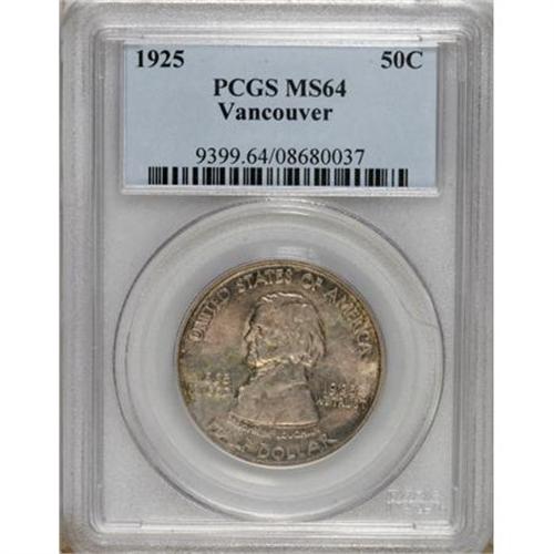 <B>1925 50C Vancouver MS64 PCGS.</B></I> PCGS Population (897/930). NGC Census: (763/788). Mintage: 14,994. Numismedia Wsl. Price for NGC/PCGS coin in MS64: $475. (#9399)<BR><BR><b>Shipping:</b> Coins & Currency (<a target="_blank" href="http://www.heritageauctions.com/common/shipping.php">view shipping information</a>)