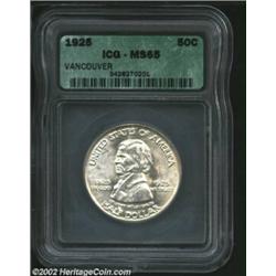 1925 50C Vancouver MS65 ICG. An essentially brilliant and highly lustrous Gem that has a sharp strik