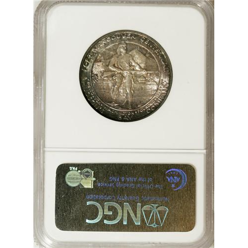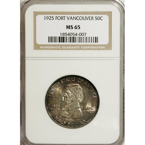 <B>1925 50C Vancouver MS65 NGC.</B></I> Laura Gardin Fraser made many contributions to the classic commemorative series, and while the Vancouver is not one of her better-known models, close examination of the design reveals how consistent it is with the rest of her oeuvre. This shining, well-defined Gem displays strong luster beneath rich rose and violet patina with glints of gold.<BR><BR><b>Shipping:</b> Coins & Currency (<a target="_blank" href="http://www.heritageauctions.com/common/shipping.php">view shipping information</a>)