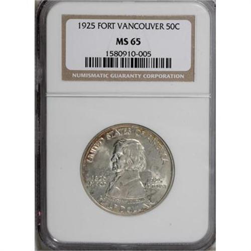 <B>1925 50C Vancouver MS65 NGC.</B></I> NGC Census: (527/265). PCGS Population (625/294). Mintage: 14,994. Numismedia Wsl. Price for NGC/PCGS coin in MS65: $1,250. (#9399)<BR><I>From The Frank DuVall Collection of U.S. Commemoratives.</B></I><BR><BR><b>Shipping:</b> Coins & Currency (<a target="_blank" href="http://www.heritageauctions.com/common/shipping.php">view shipping information</a>\)