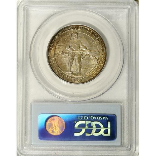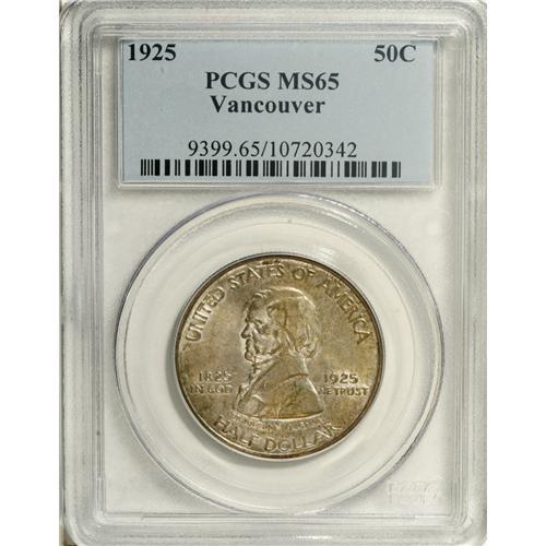 <B>1925 50C Vancouver MS65 PCGS.</B></I> Deep reddish-orange and violet-blue patina saturates the luminous surfaces of this well struck Gem. Modestly marked with plenty of eye appeal.<BR><BR><b>Shipping:</b> Coins & Currency (<a target="_blank" href="http://www.heritageauctions.com/common/shipping.php">view shipping information</a>)