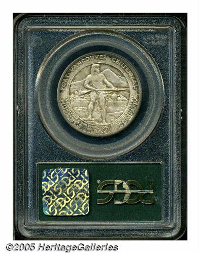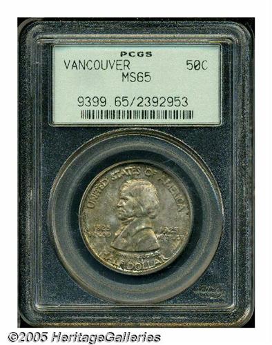 <B>1925<50C> Vancouver MS65 PCGS.</B></I> Vibrant mint luster and covered with rich, multicolored toning over both sides. An original example of this conditionally scarce commemorative.