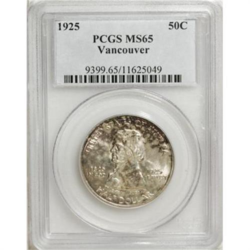 <B>1925 50C Vancouver MS65 PCGS.</B></I> PCGS Population (624/294). NGC Census: (526/263). Mintage: 14,994. Numismedia Wsl. Price for NGC/PCGS coin in MS65: $1,250. (#9399)<BR><I>From The Frank DuVall Collection of U.S. Commemoratives.</B></I><BR><BR><b>Shipping:</b> Coins & Currency (<a target="_blank" href="http://www.heritageauctions.com/common/shipping.php">view shipping information</a>\)