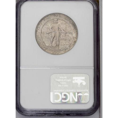 <B>1925<50C> Vancouver MS67 NGC.</B></I> An outstanding example of this earlier commemorative half. Very few Vancouver halves have survived in such a superior state of preservation. In fact, NGC has only recorded 44 such pieces with one finer, and PCGS has seen a similar number (1/06). The mint luster on this piece is simply outstanding. It rolls around each side and is undiminished by the finely speckled gray-lilac and rose toning. As one would expect, there are no marks worthy of individual mention.