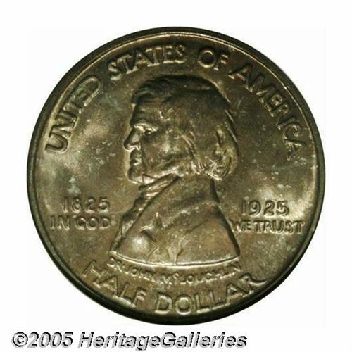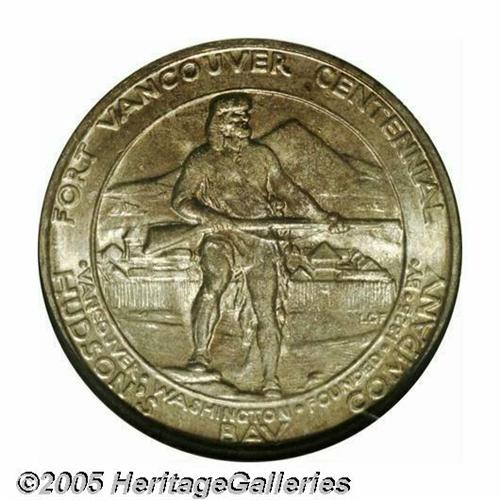 <B>1925<50C> Vancouver MS67 NGC.</B></I> Both the bust of Dr. John McLoughlin and the frontiersman are refreshingly free from the abrasions usually seen on this issue, thus the MS67 grade. Both sides are covered with deep reddish-russet toning with bright, sparkling underlying mint luster. Population: 45 in 67, 0 finer (3/05).
