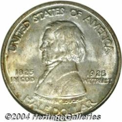 <table><tr><td><table><tr><td>1925 50C Vancouver MS67 NGC. In average Mint State grades, the Fort Vancouver commemorative is fairly obtainable despite its lower mintage. At the Superb Gem grade level, however, this issue is very scarce. Both sides display medium gray-apricot patina around which powder-blue toning is interspersed in a random manner. The surfaces are nicely frosted with a sharp, pristine appearance. Population: 33 in 67, 0 finer (4/04). <BR><BR><B>Important notice:</B> Heritage usually auctions material at the rate of 200-250 lots per hour. On some occasions eBay Live bid software or the Internet may not be able to keep up with the pace of the auction. We recommend placing a realistic absentee bid now as insurance to avoid disappointment. Occasionally the auctioneer may eliminate or reject an eBay Live bid, and the auctioneer may also reopen a lot after the close of the eBay live bidding (usually because we missed an audience bid), and may reject your bid even if it shows you as the winning bidder. By bidding via eBay Live, you agree that Heritage may award the lot to another bidder at its sole discretion under the circumstances described above or any other reasonable circumstances. Since eBay bids are not shown to us until we open the lot on the floor, we treat those bids just like floor bids. In most cases the floor responds before the eBay bid is presented to us, due to Internet lag time, so for consistency we have made it a policy that floor bids are always considered first over tie eBay live bids. Also please note that all Heritage lots purchased through eBay Live carry a 20% Buyer's Premium. Please make sure you read the Terms and Conditions before you bid. <BR><BR><B>IMPORTANT ANNOUNCEMENT ABOUT RESERVES:</B> Heritage now divulges all reserves on its web site 7 days before every auction. If you want to know whether the reserve on this lot has been met, and if not, what the reserve amount is, please visit this lot page on the HeritageCoin.com web site, or email: bid@HeritageGalleries.com </span></font></td></tr></table></td></tr></table>