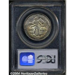 <B>1925<50C> Vancouver MS67 PCGS.</B></I> This lovely Vancouver commemorative features splashes of sky-blue, violet, and gold toning over lustrous surfaces. The design elements are well struck up, revealing most of the intricate detail of Fort Vancouver in the background on the reverse. No mentionable marks appear on the well preserved surfaces of this relatively low mintage (14,994 pieces) issue. Population: 41 in 67, 1 finer (3/04). <BR><BR><B>Important notice:</B> Heritage usually auctions material at the rate of 200-250 lots per hour. On some occasions eBay Live bid software or the Internet may not be able to keep up with the pace of the auction. We recommend placing a realistic absentee bid now as insurance to avoid disappointment. Occasionally the auctioneer may eliminate or reject an eBay Live bid, and the auctioneer may also reopen a lot after the close of the eBay live bidding (usually because we missed an audience bid), and may reject your bid even if it shows you as the winning bidder. By bidding via eBay Live, you agree that Heritage may award the lot to another bidder at its sole discretion under the circumstances described above or any other reasonable circumstances. Since eBay bids are not shown to us until we open the lot on the floor, we treat those bids just like floor bids. In most cases the floor responds before the eBay bid is presented to us, due to Internet lag time, so for consistency we have made it a policy that floor bids are always considered first over tie eBay live bids. Also please note that all Heritage lots purchased through eBay Live carry a 20% Buyer's Premium. Please make sure you read the Terms and Conditions before you bid. </span></font></tr></table></td></tr></table>