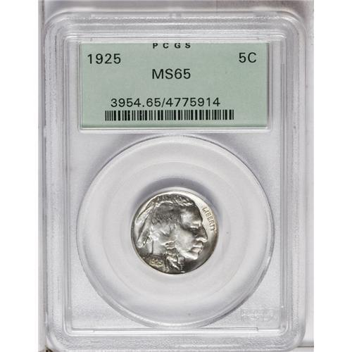 <B>1925<5C> MS65 PCGS.</B></I> A premium quality example for the grade with uninterrupted field luster and nearly comparable devices. The pastel patination while subtle is also notable as it adds an original appeal. Light planchet chatter is still visible on the bison's front leg and belly, but this is neither bothersome nor unusual for the issue.