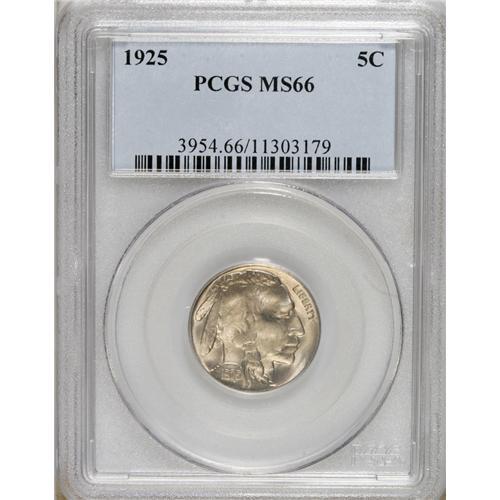 <B>1925 5C MS66 PCGS.</B></I> A dusting of gold patina visits this lustrous and lovely Premium Gem. Well preserved, and attentively struck aside from the curve of the tail. PCGS has certified just three pieces finer (2/07).<BR><BR><b>Shipping:</b> Coins & Currency (<a target="_blank" href="http://www.heritageauctions.com/common/shipping.php">view shipping information</a>)