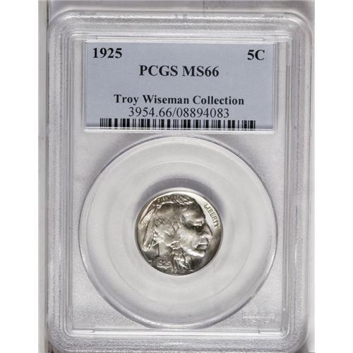 <B>1925<5C> MS66 PCGS.</B></I> Nicely struck with typical luster. The blue and green patina that covers both sides is quite appealing. PCGS has certified just two finer examples (8/06).<BR><I>From The Troy Wiseman Collection.</B></I>