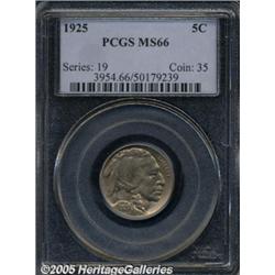 <B>1925 5C MS66 PCGS.</B></I> Luminous coral-red and steel-blue dominate this immaculate Buffalo Nickel, which is sharply struck and undeniably original. Population: 91 in 66, 1 finer (2/05).