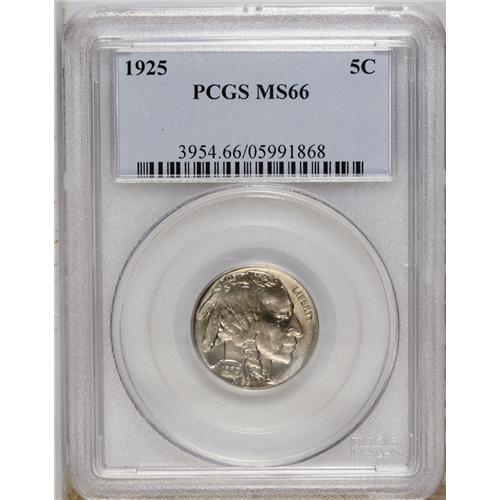 <B>1925 5C MS66 PCGS.</B></I> Whispers of ice-blue and tan-beige patination bathe highly lustrous surfaces. A nice strike characterizes the design elements.<BR><BR><b>Shipping:</b> Coin/Currency (<a target="_blank" href="http://www.heritageauctions.com/common/shipping.php">view shipping information</a>)