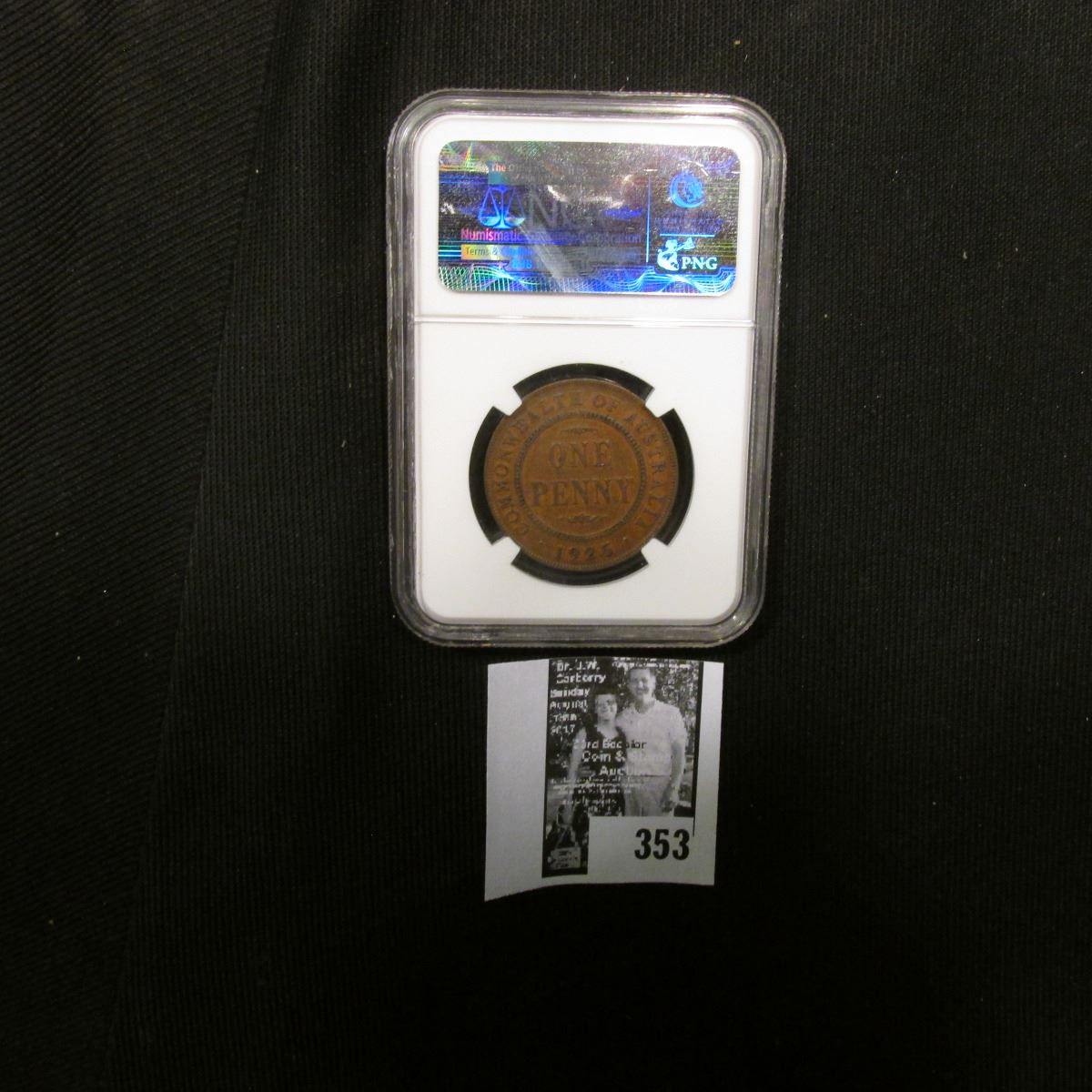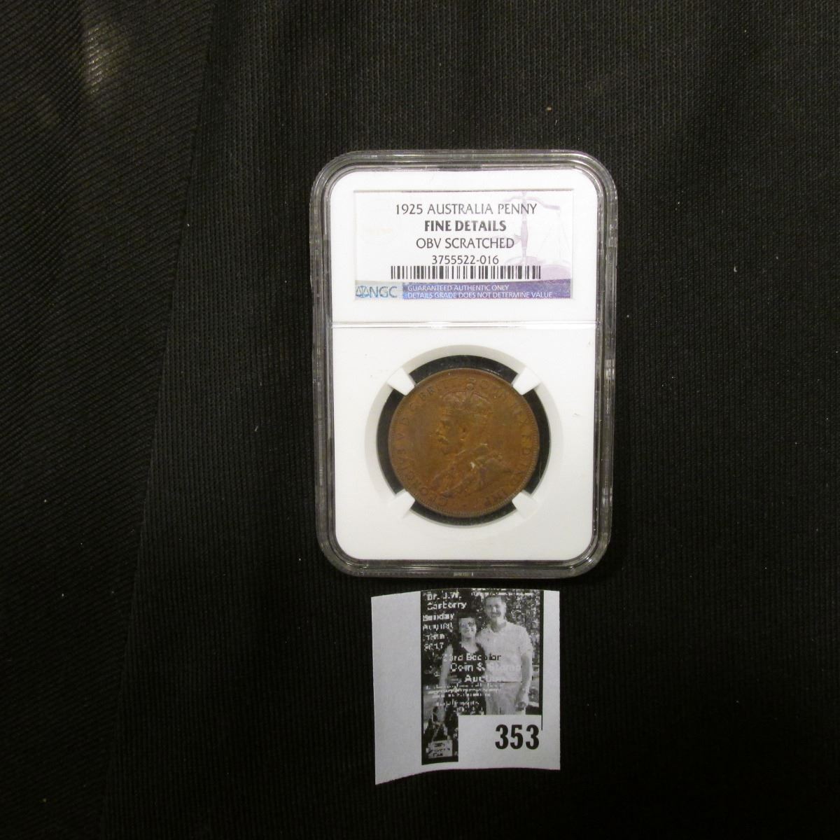 1925 Australia One Penny NGC slabbed Fine Details Obv. Scratched.