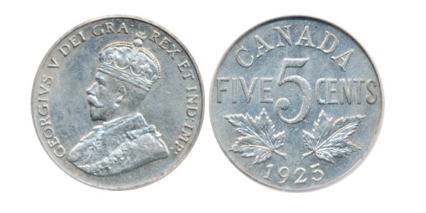 1925. Both ICCS and PCGS graded Mint State-64. A rare well struck with a full band. A choice example of one of the ‘key’ dates of the George V nickel series.
