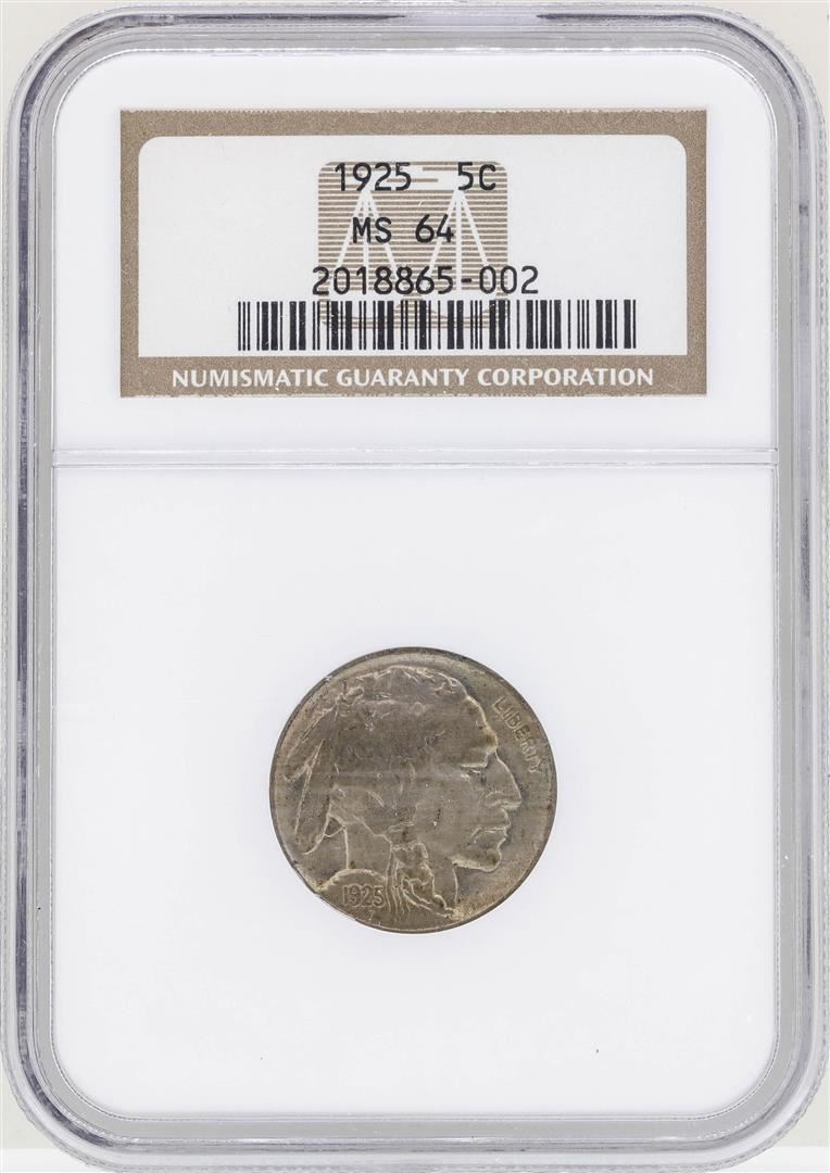 One 1925 Buffalo Nickel Coin NGC MS64. NGC Certified.