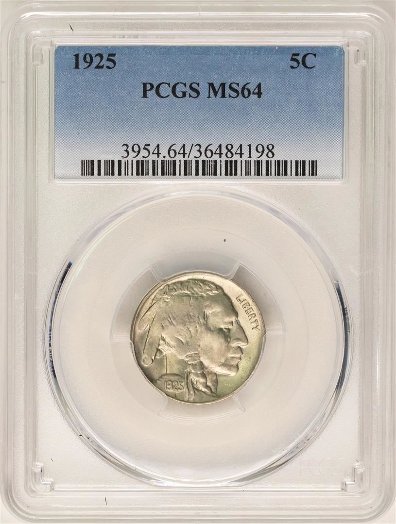 One 1925 Buffalo Nickel Coin PCGS MS64. PCGS Graded.
