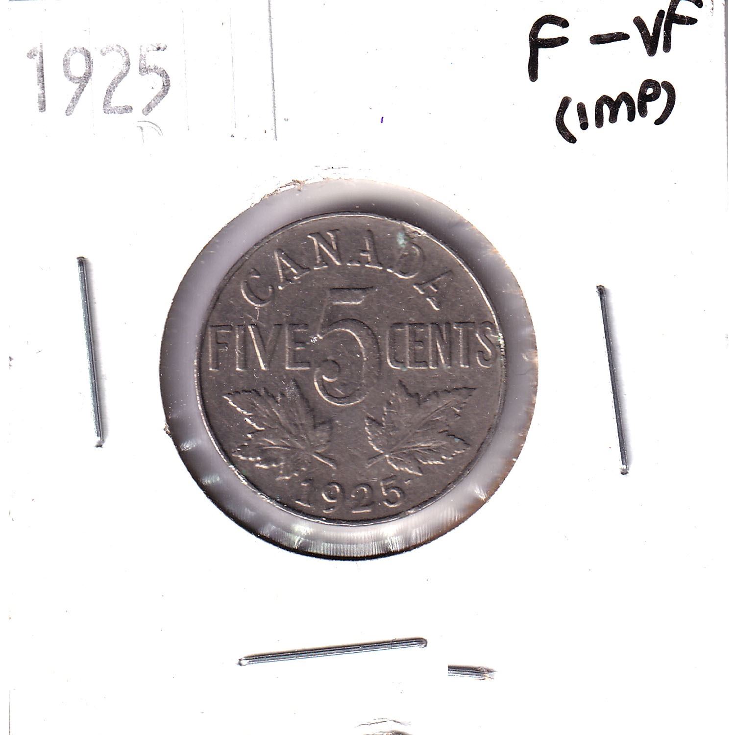 1925 Canada 5-cent F-VF (Impaired)