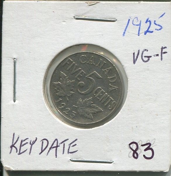 1925,Canadian 5 cent coin (KEY DATE),King George V