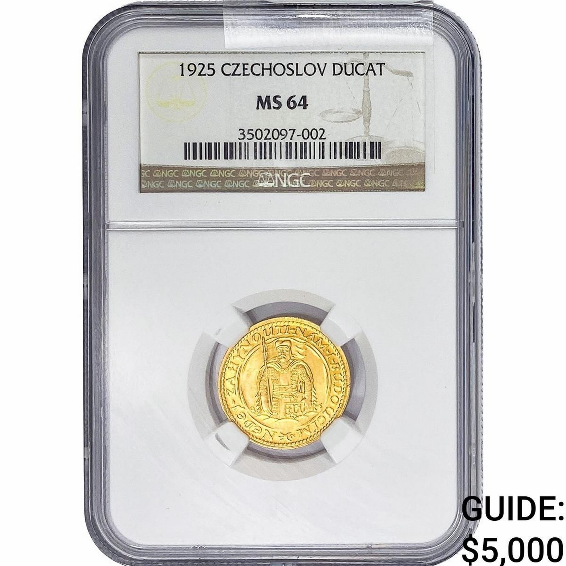 1925 Czechoslov .1106oz Gold Ducat NGC MS64