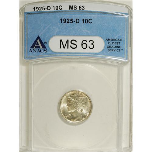 1925-D 10C MS63 ANACS. NGC Census: (11/19). PCGS P