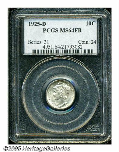 <B>1925-D<10C> MS64 Full Bands PCGS.</B></I> This is a brilliant example with sharp design elements and full satiny luster on both sides. Although not a rare date, this is an elusive issue when fully struck. Population: 89 in 64, 48 finer (5/05).