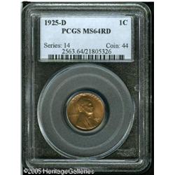 <B>1925-D 1C MS64 Red PCGS.</B></I> Lustrous coppery-gold surfaces are overlain with speckles of olive and lavender. Well struck, with no discernible marks. Lot:5489