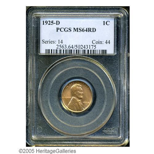 1925-D 1C MS64 Red PCGS. The glossy golden-tan surface 1925-D[1C] MS64 Red PCGS.