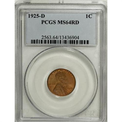 <B>1925-D 1C MS64 Red PCGS.</B></I> This softly mellowed, yet vibrant Denver near-Gem has carrot-orange surfaces with undercurrents of brick-red. Solidly struck with a single grade-defining abrasion that crosses Lincoln's jawline.<BR><BR><B>Coin Engraver:</B> Victor D. Brenner<BR><BR><b>Shipping:</b> Coins & Currency (<a target="_blank" href="http://www.heritageauctions.com/common/shipping.php">view shipping information</a>)